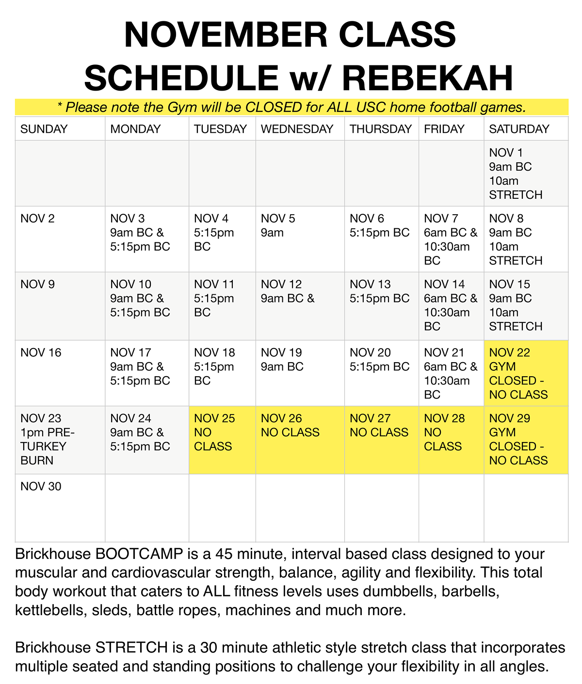 Join our certified personal trainer and instructor, Rebekah Sturkie, everyday for an amazing class experience designed to work you from head to toe. Perfect for all ages and experience levels!